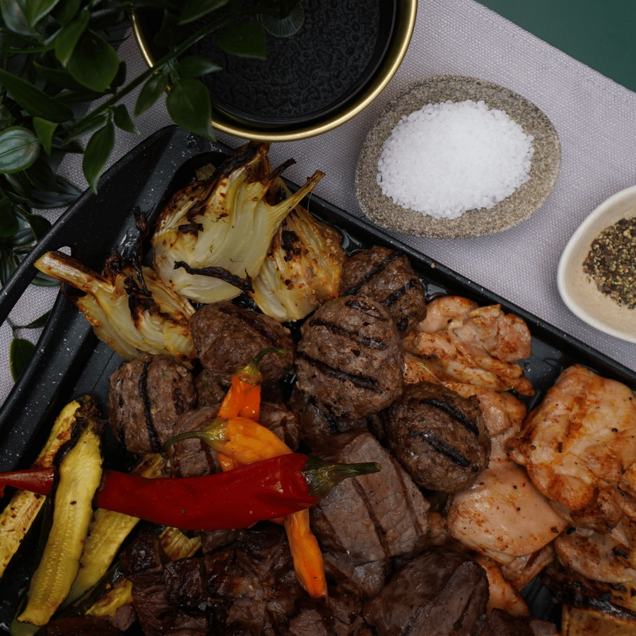 מנה כוללת סטייקים, פילה בקר, סלטי שף, מנות ראשונות מגוונות ועוד ב-250 ש"ח למנה כולל מע"מ. מקסימום מוזמנים 60 איש.