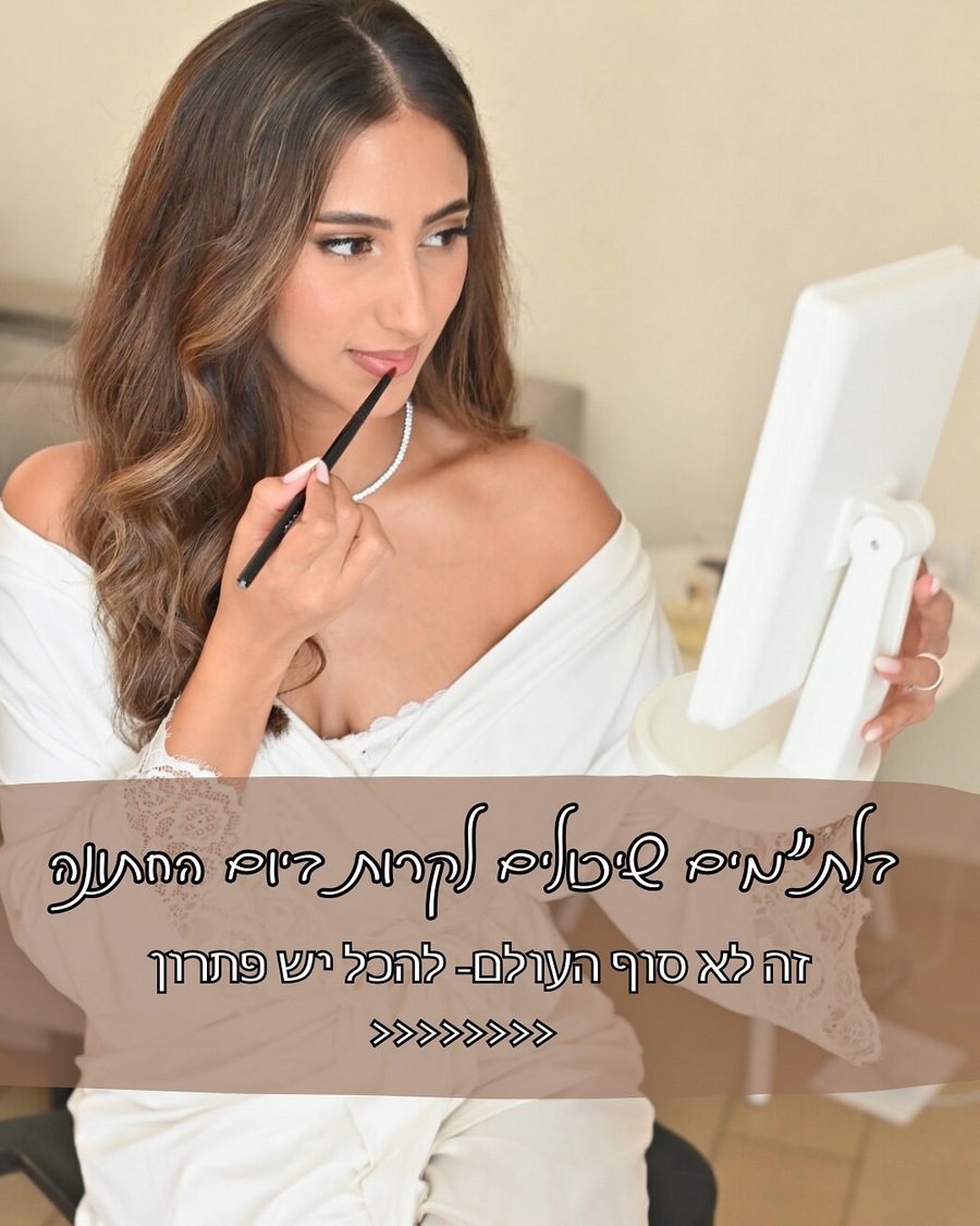 חבילת איפור ושיער מורחבת לסטודנטיות כלות הכוללת איפור ושיער + ריסים + תוספות שיער (במידת הצורך) + פגישת ייעוץ או ניסיון ב-1,700 ש"ח לסטודנטיות בלבד, במקום 3,000 ש"ח.